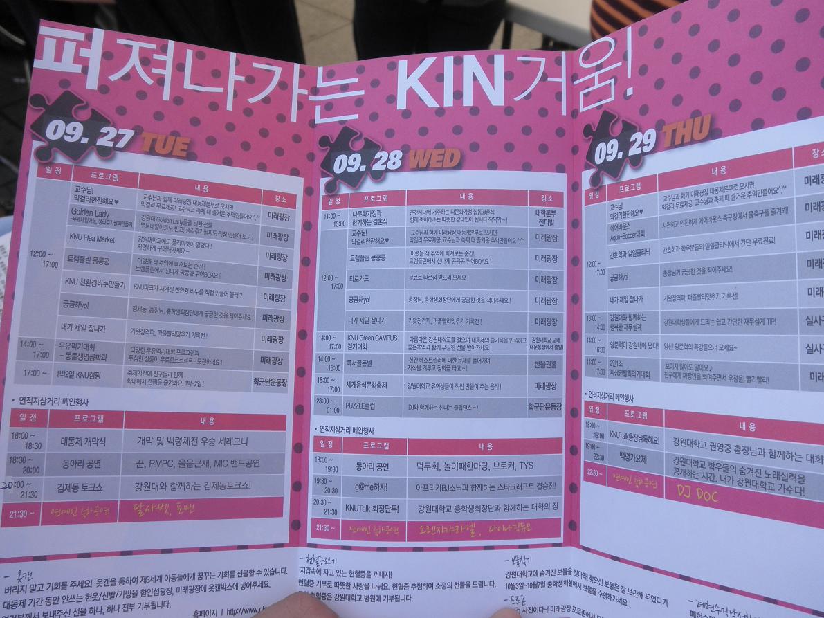 韓国の学祭は昼は勉強したりゆる~くやって、夜から大はしゃぎして朝まで飲み会コースなんだって。